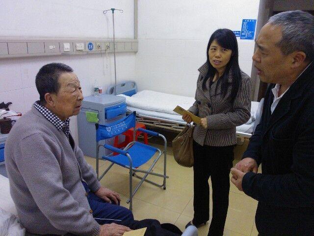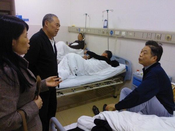 4月20日下午,校离退休工作处杨学锋处长、刘家仁副处长代表学校前往省中医研究院、市四医院和湘雅附三医院慰问近日住院的臧哲男、余唯凡、黄刚、汤茂云等离退休老同志,嘱咐他们安心养病,早日康复,并送上慰问金。受慰问的老同志对组织的关怀表示由衷的感谢。