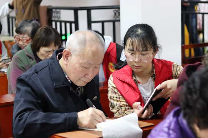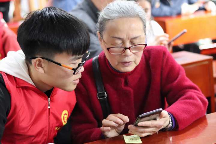 活动中老人们求知的渴望和同学们耐心的指导形成一幅幅温馨的画面。