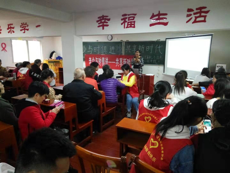 活动主要内容是同学们通过PPT来教展示微信功能的使用,手把手教老人们如何预防手机诈骗;如何用转账、手机充值、生活缴费、滴滴出行、出行订票等等,让老人们的生活变得更加便捷和丰富多彩,同时还送上了精彩的文艺节目。