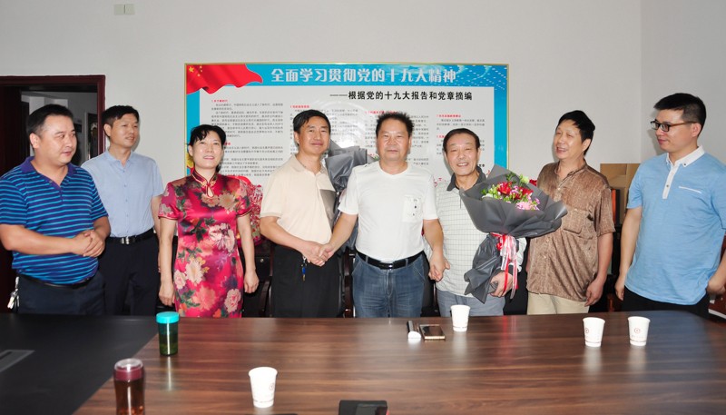 九月十日下午五时,中国硬笔书法协会副主席,湖南省硬笔书法家协会主席崔国强,湖南省硬笔书法家协会副主席林广大,李付飞先生等一行七人,专程来我校看望老书法家老教师唐德斌、朱冬华先生,赞扬他们的高尚师德和为我省的书法事业作出的无私奉献!我校大学生书法协会的学子们在书法家冯勇老师的带领下,向两位老艺术家敬献鲜花水果。