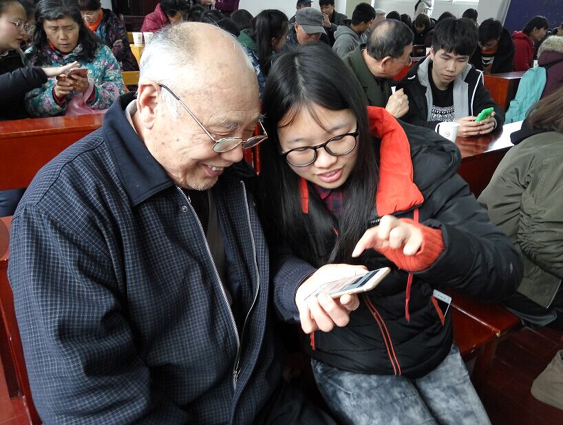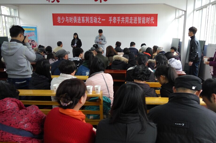 3月14日下午,校教职工活动中心内一片欢歌笑语,热闹非凡,这是离退休工作处与计算机与信息工程学院共同组织的“老少与时俱进系列活动之一,手牵手共同走进智能时代”联谊活动。此次活动主要内容是大学生志愿者们一对一手把手教退休老人们操作智能手机,同时送上精彩的文艺节目。